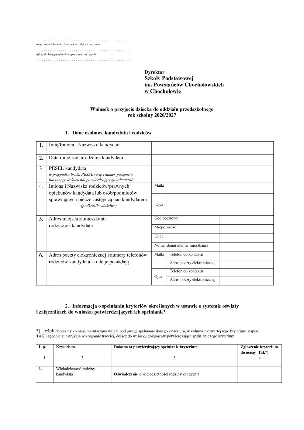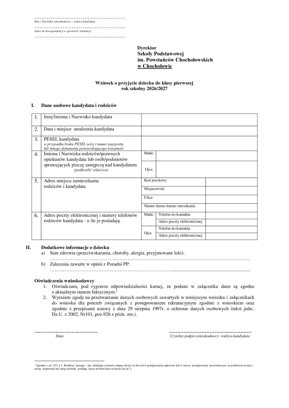 1) >szkole – należy przez to rozumieć Szkołę Podstawową im. Powstańców Chochołowskich w Chochołowie;>