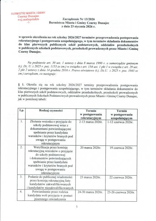 2) organie prowadzącym – należy przez to rozumieć Miasto i Gminę Czarny Dunajec;